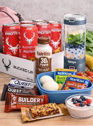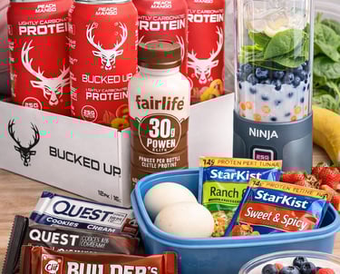 Smooth, filling, and high-protein—perfect when breakfast didn’t happen. They come in 30g or 42g of protein. I've hyperlinked the chocolate 42g for you to check out. But check out their Vanilla and strawberry flavors as well as the 30g options!Bucked Up Carbonated Protein Drinks